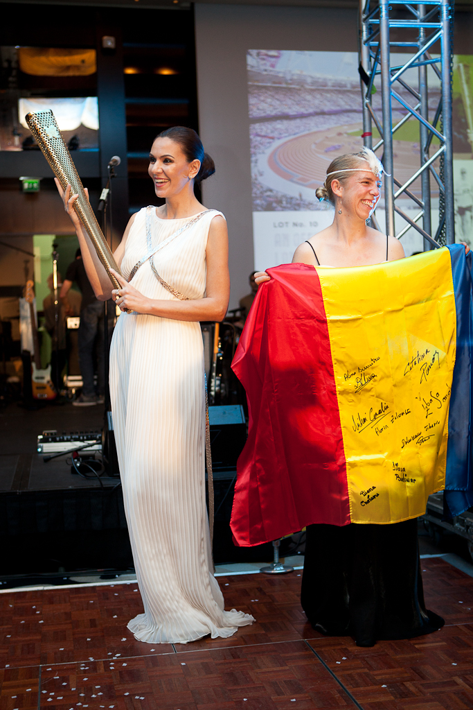 Alături de torţa olimpică s-au licitat bilete VIP la Grand Prix oferite de Vodafone, o cină pe Arcul de Triumf şi bilete cu acces la orice eveniment găzduit de pe National Arena pentru tot anul 2013 oferite de Primăria Capitalei, obiecte donate de vedete de la Hollywood, o bijuterie unica cu diamante oferită de celebra casă de bijuterii Sabion, precum şi o vizită pe platourile de filmare şi întâlnire cu celebrul regizor Terry Gilliam.